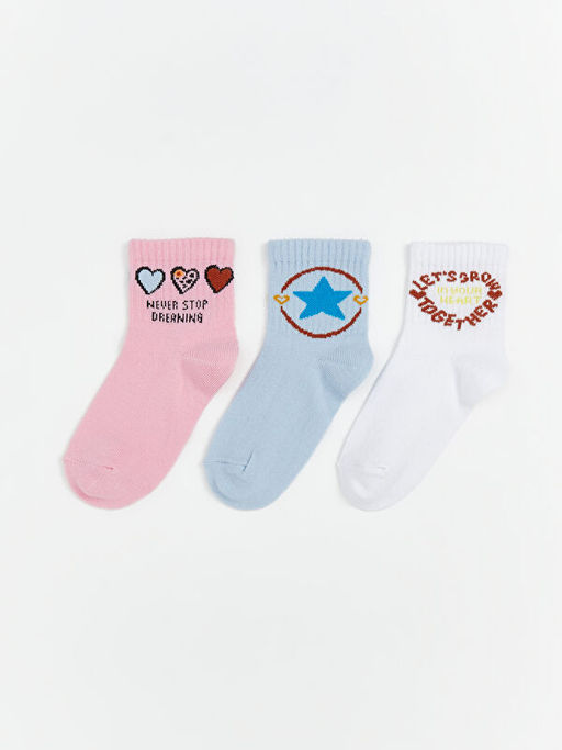 Desenli K?z ?ocuk Soket ?orap 3l?