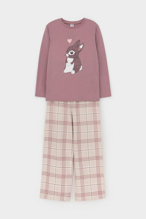 Артикул: К 1623/морозная вишня,текстильная клетка пижама для дев