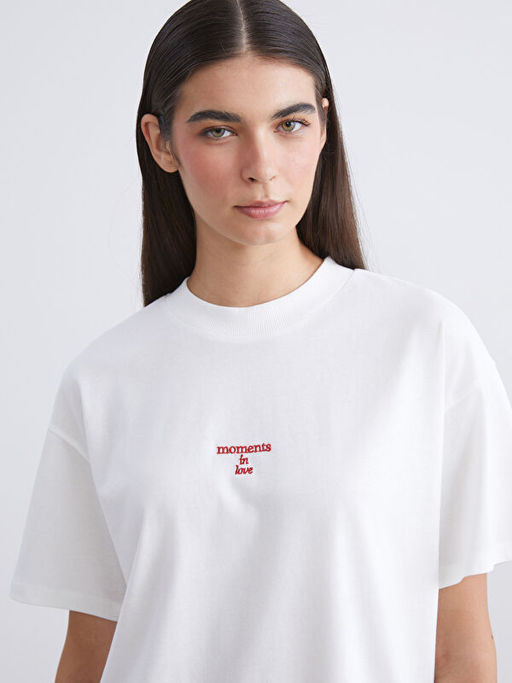 • Bisiklet Yaka Bask?l? Kad?n Ti??rt