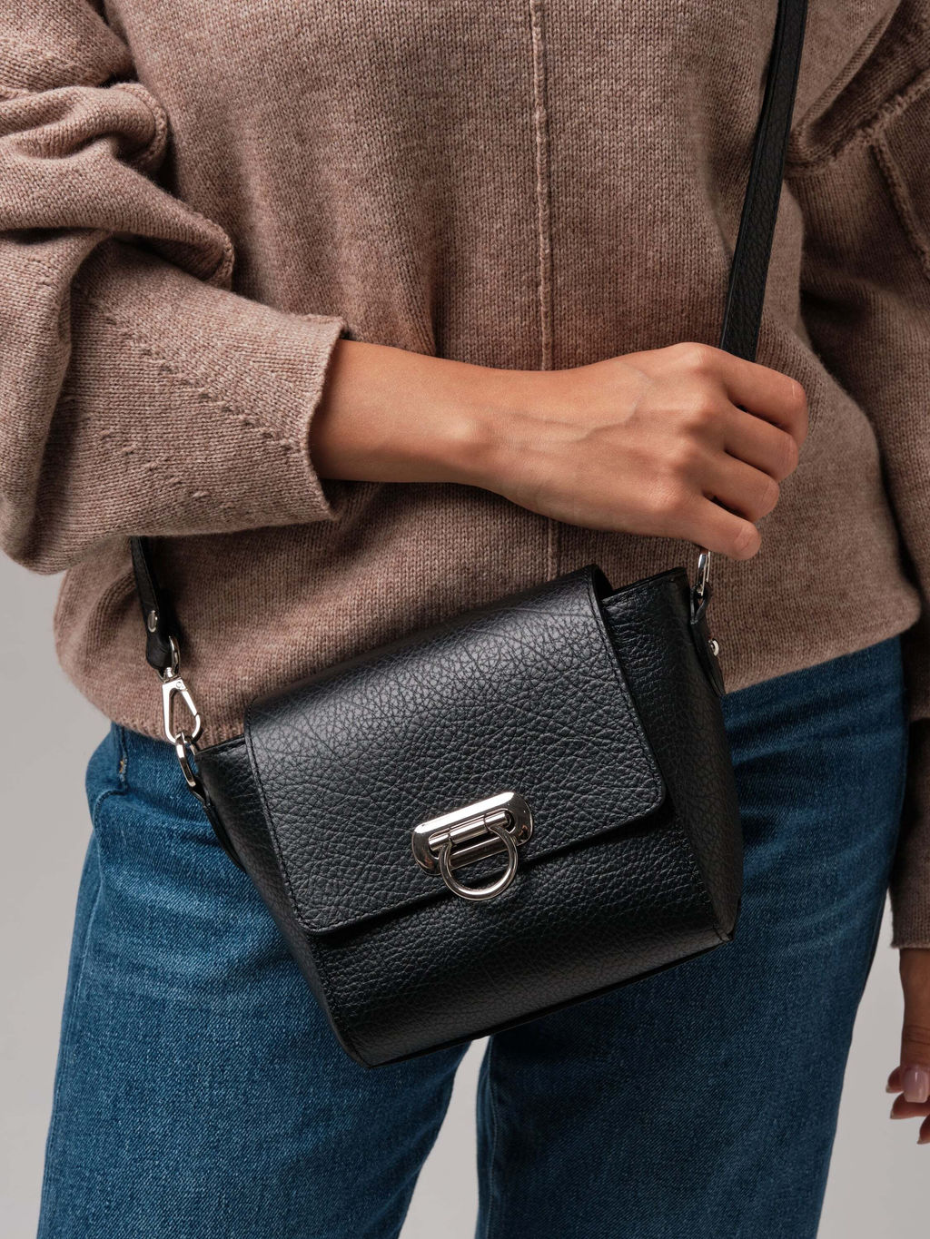 Женская кожаная сумка кросс-боди Azaro 3520 черный бизон - стильный акцент для тех, кто ценит лаконичность и качество. Детали: натуральная кожа, внутренняя отделка клапана из натуральной замши, съемный регулируемый ремень, 1 внутреннее отделение, 2 внутренних кармана - на молнии и открытый, застежка на молнию и замок-вертушку. Выполненная из натуральной кожи, эта сумка кроссбоди обладает выразительной текстурой и безупречным исполнением. Глубокий и насыщенный черный цвет придаёт образу утончённость и элегантность. Этот цвет идеально сочетается как с нейтральными, так и с контрастными тонами, делая сумку универсальной деталью гардероба. Компактная форма и функциональный дизайн обеспечивают комфорт в повседневном использовании, а металлическая фурнитура в серебристом тоне добавляет современного шика. Сумка станет стильным завершением образа и подчеркнёт безупречный вкус своей обладательницы. -- Характеристики -- Цвет: черный Материал: Натуральная кожа Бренд: Azaro Высота, см: 14 Ширина, см: 21 Глубина, см: 10 Материал подкладки: Хлопок Количество внутренних отделений: 1 Тип застежки: Молния Формат А4: не вмещает Длина плечевого ремня, см: 116 Пол: женская коллекция Группа товара: Сумки