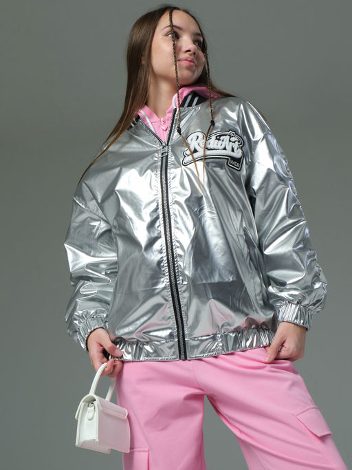 Стильная куртка-бомбер на молнии свободного силуэта на подкладе без утеплителя из эластичной нешуршащей стойкой к истиранию ткани с трикотажным контрастным воротником-стойкой. Манжеты и низ изделия на резинке. Куртка имеет два удобных прорезных карманов с листочкой. На полочке декоративная фирменная нашивка. Подходит для теплой весенней погоды, устойчива к попаданию влаги. Вся наша продукция сертифицирована и соответствует высочайшим стандартам качества, наша компания является участником программы "Бережливое производство" Состав:ткань верха: 100% п/э, 100% полиуретан, подкладка-100% полиэстер