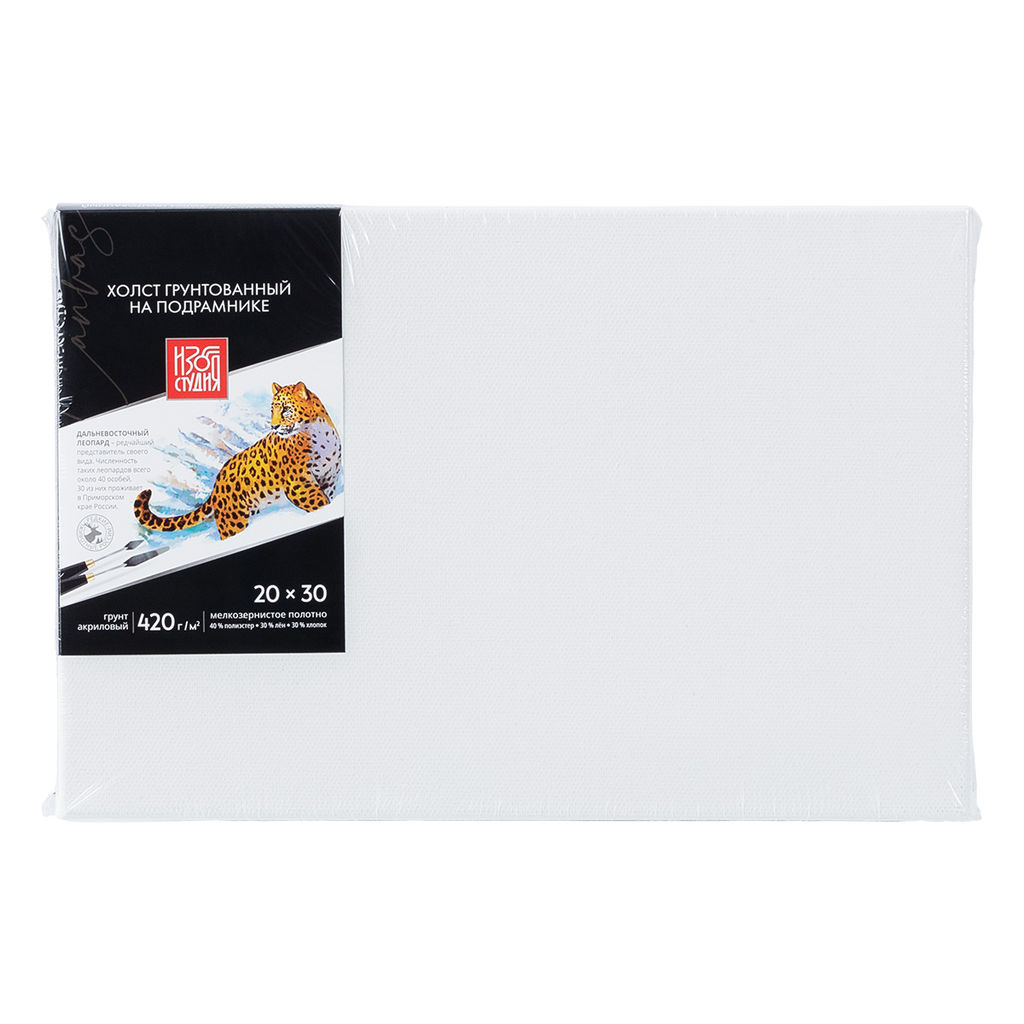 • Холст грунтованный на подрамнике Аква-колор Изостудия IZO-MCFG-2030 40% полиэстер, 30% лён, 30% хлопок 20 х 30 см 420 г/кв.м 2 шт мелкозернистый