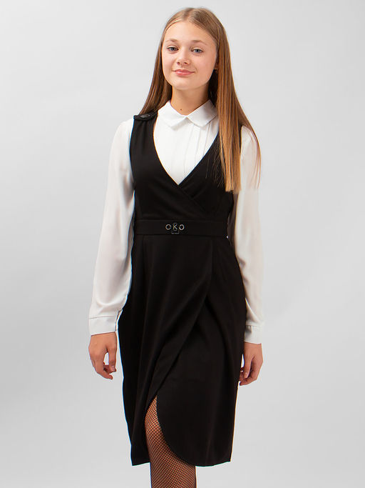 Очаровательный сарафан для девочки Соль&Перец из плотного трикотажа, с декором на поясе. Износоустойчивый материал позволит надолго сохранить форму и привлекательный внешний вид изделия. Идеальный выбор для создания стильного, школьного образа.