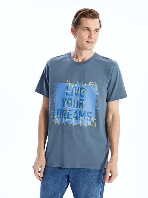 • Bisiklet Yaka D?z Grafitili Erkek Ti??rt