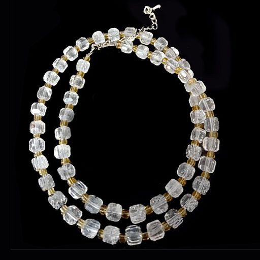 Бусы из горного хрусталя Кристальная чистота. Изящное колье длиной 45 см, где огранённые кубики горного хрусталя диаметром 4 мм чередуются с золотистыми бисеринами миниатюрная мозаика прозрачной чистоты и солнечного тепла. Каждый кубик горного хрусталя, с чёткими гранями и стеклянной прозрачностью, переливается всеми оттенками света: в зависимости от освещения камни играют серебристыми, радужными или едва уловимыми голубоватыми бликами, словно застывшие солнечные зайчики. Золотистый бисер из стекла мягко разделяет камни, создавая ритмичную игру света и добавляя украшению праздничного сияния. Надёжный замок карабин из ювелирного сплава обеспечивает комфортное ношение, а длина 45 см идеально ложится на ключицы, подчёркивая естественную женственность. Магические свойства горного хрусталя: Горный хрусталь камень чистоты и ясности, почитаемый у народов Европы, Азии и Америки как застывший свет или дыхание небес. Его энергия мягко очищает ауру от негатива, возвращая ощущение лёгкости и внутренней прозрачности. Камень усиливает интуицию и концентрацию, помогая видеть суть вещей без иллюзий и принимать взвешенные решения. Горный хрусталь действует как энергетический усилитель: он не навязывает свою волю, а многократно усиливает намерения и качества своего владельца будь то любовь, мудрость или творческое вдохновение. Он также способствует глубокому расслаблению и восстановлению после стресса, создавая вокруг человека поле спокойствия и гармонии. Геометрия кубиков усиливает фокусирующее действие камня: чёткие грани направляют рассеянный свет и энергию в упорядоченный поток, помогая превращать хаос мыслей в ясный план действий. Золотистые вкрапления символизируют солнечную жизненную силу баланс между прохладной чистотой хрусталя и тёплой энергией сердца. Эти бусы станут верным спутником в периоды поиска ясности, добавят изысканности повседневному образу и послужат тонким талисманом внутреннего света. Материалы: горный хрусталь, ювелирный сплав, стеклянный бисер. Длина: 45 см. Замок: карабин. В магазине Аланкара можно недорого купить оптом бусы с горным хрусталём, а также другие украшения из натуральных камней. Украшения из натуральных камней придадут внешности каждой женщины неповторимую яркость и индивидуальность. Аланкара подарки и сувениры оптом по доступным ценам. #натуральныекамни #украшенияоптом #бижутерияоптом #горныйхрусталь #украшенияизхрусталя