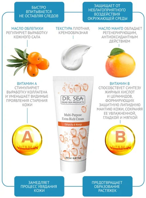 1060 Dr.Sea Универсальный обогащенный крем с маслами Облепихи и экстрактом манго, 200 мл