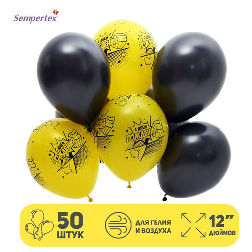 • Воздушные шары латексные 12" «С Днём Рождения, Комикс», 50 шт.