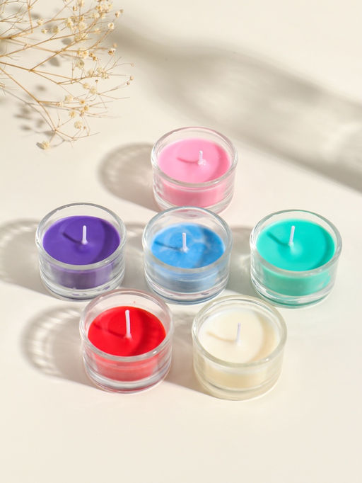 Набор свечей ароматических в стекле, 6 шт. ароматы: роза, свежесть, жасмин, лаванда, 19×13×3.3 см