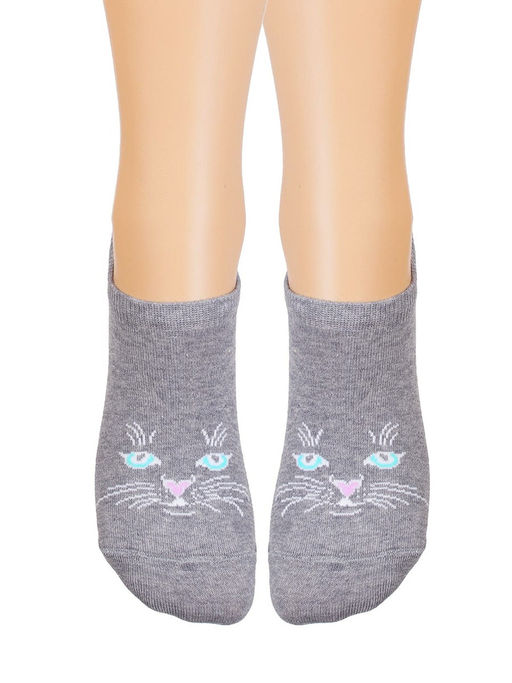 Следки из хлопка с рисунком Кошка, удобная специальная форма, позволяет оставаться невидимыми в обуви, подходят, как для занятия спортом, так и для повседневной носки.