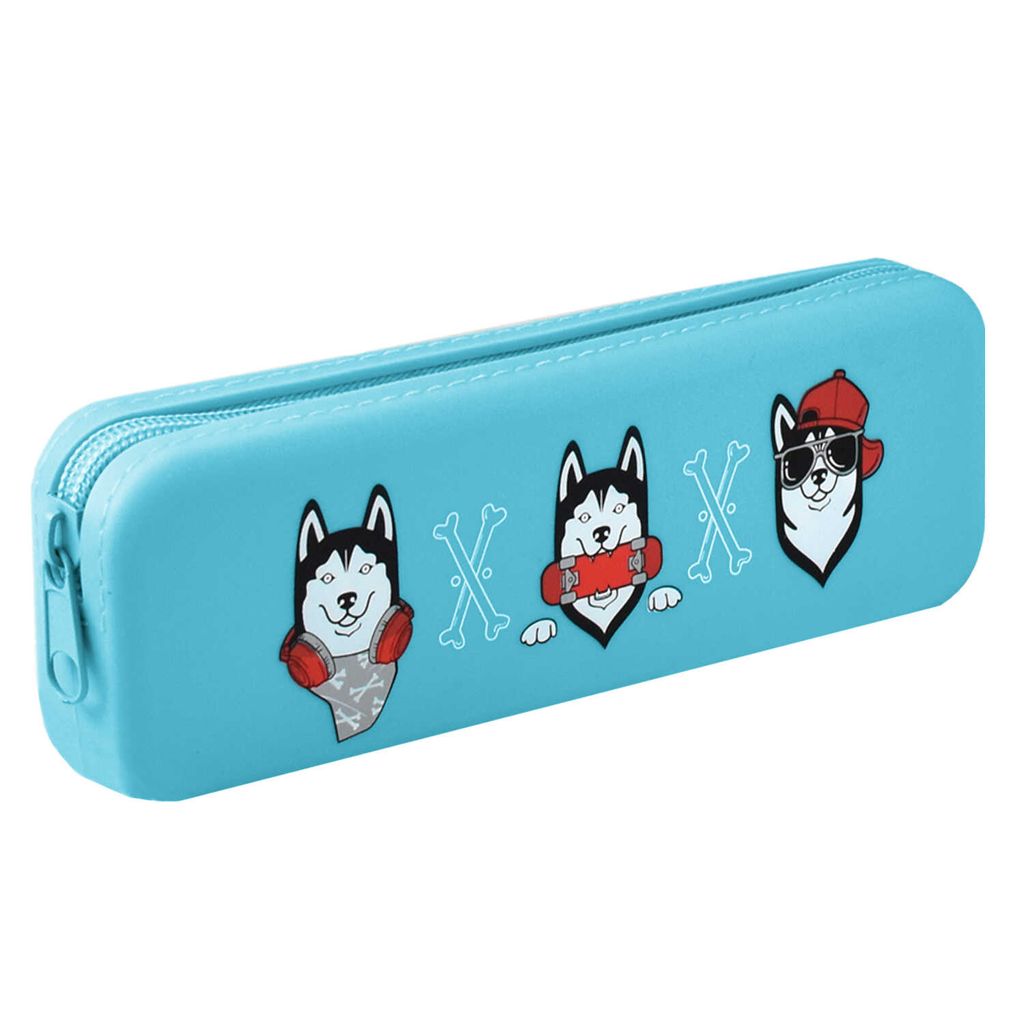 Пенал школьный, арт.58034/ 25 ХАСКИ (без наполнения, 20х6х2.5 см, силикон, молния, шелкография, ПЭТ-пакет).