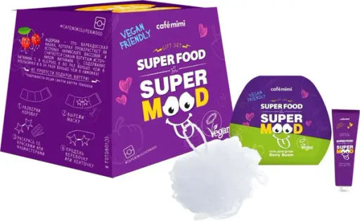 CAFE MIMI Подарочный набор BERRY BOOM (гель д/душа + мочалка + крем д/рук) 135г