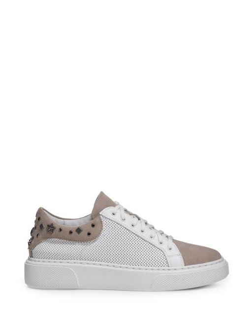 Кеды польского бренда Simen декорированы фигурными металлическими заклепками. Выполнены из натуральной кожи. Три цветовых варианта на выбор.