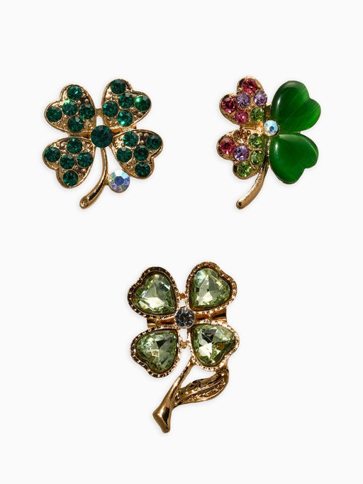• Броши "Клевер" (набор 3шт), цвет зелёный в золоте