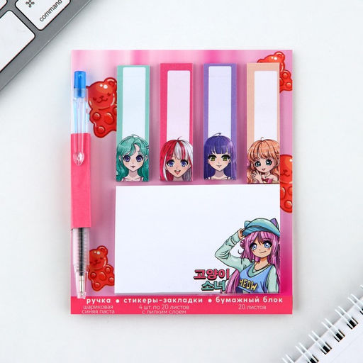 • Подарочный набор стикера-закладки и ручка Аниме, 20 л в блоке