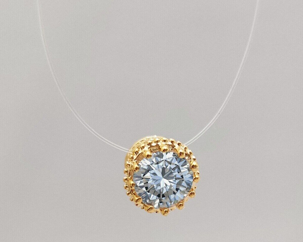 Кулон висит на леске, которая смотрится очень нежно и аккуратно, она прочная и не вызывает раздражения на коже.