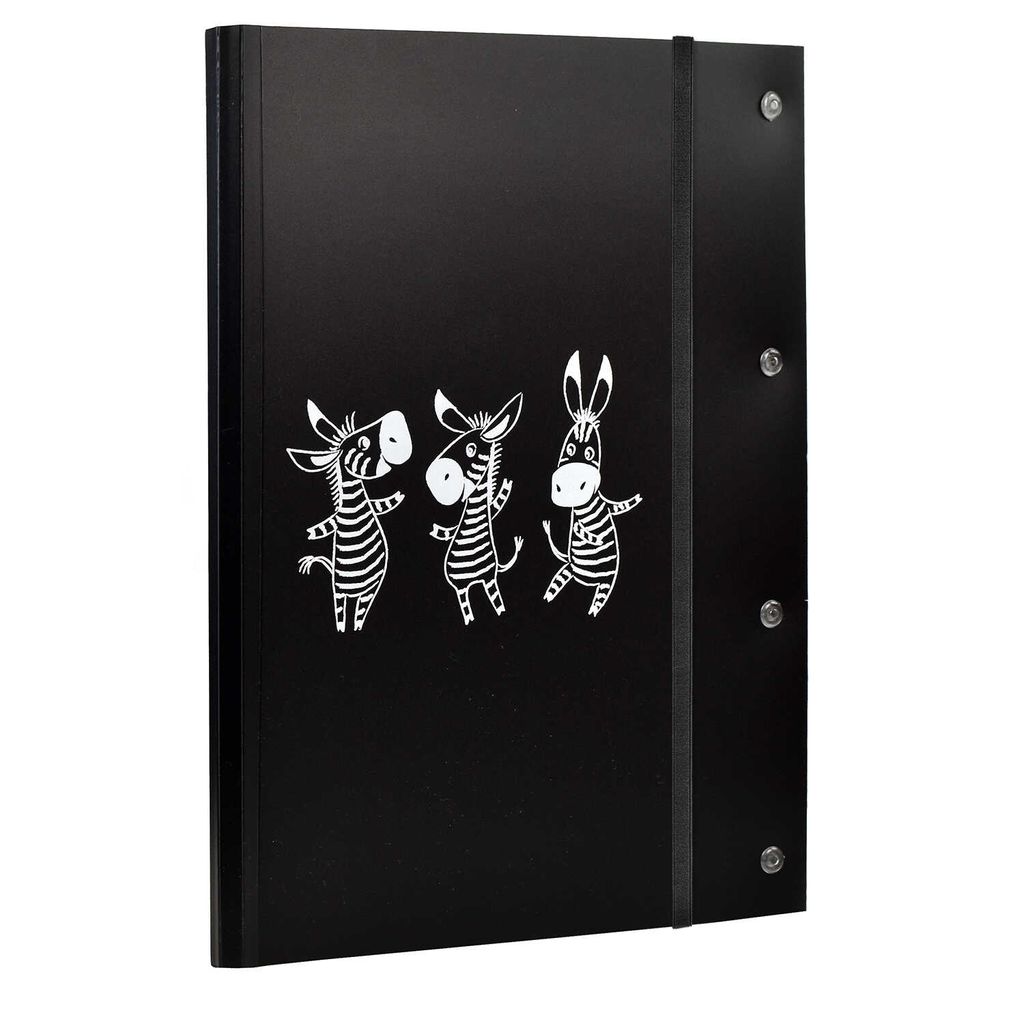 Папка для чертежей и рисунков пластиковая арт. 53658/ 12 ЗЕБРЫ (полипропилен, формат А4, 23.5х31 см, 1 отделение (-я), резинка, 20 ПВХ файлов формата А3, печать шелкографией)
