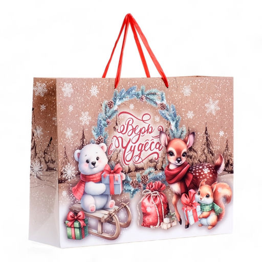 • Пакет подарочный новогодний ламинированный горизонтальный «Зверята», L 40×31×11.5 см