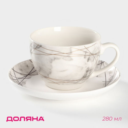 Чайная пара серии «Мрамор» - это не просто отличный подарок, но и замечательный предмет декора, дополняющий Ваш дом, наполняющий его гармонией и уютом. Изделие изготовлено из костяного фарфора - чрезвычайно износостойкого и прочного материала, что делает посуду идеальной для ежедневного использования. Фарфор покрыт специальной высокопрочной глазурью, благодаря которой,изделие надолго сохраняет свою новизну и не боится высоких температур.Посуду смело можно ставить в микроволновую печь, холодильник, мыть в посудомоечной машине. Набор: Да. Количество персон: 1. В наборе, шт.: 2. Объём, мл: 280. Тематика: Мрамор. Тематика: Линии. Рисунок: Да. Дополнительный аксессуар: Без аксессуаров. Наличие подставки: Да. Можно мыть в посудомоечной машине: Да. Можно использовать в СВЧ-печи: Да. Текстура: Гладкая. Особенности: Без особенностей. Матовая поверхность: Нет. Коллекция: «Мрамор». Бесплатная доставка: Да. Наша разработка: Да. Размеры товара: 15/9/15. Примечание: Оттенок данного товара может незначительно отличаться от фото/видеоизображения (в зависимости от настроек яркости вашего экрана).. Примечание: В наименовании указан полный объём с замером до края.Полезный объём будет отличаться в меньшую сторону от указанного..