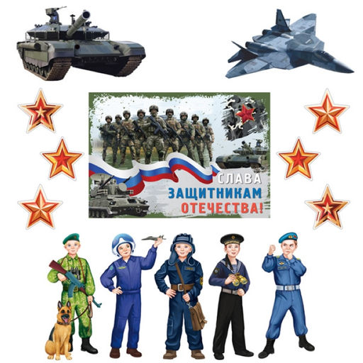 • Комплект для оформления интерьера. 23 февраля. Герои Отечества (плакат А3, 2 фигурных плаката А3 и 3 звезды по 2 шт.)