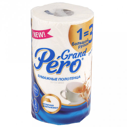 • Полотенце бумажное 2-х слойное "GrandPero" 1 рулон, 27м, белый (Россия)