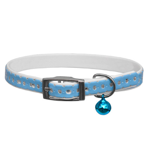 Ошейник "Дивелла" двойной, с блестками и бубенчиком, для кошек, голубой, шир. 10мм 00210115-06 25ка23