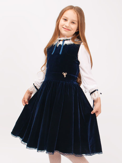 Очаровательный сарафан для девочки Соль&Перец из бархата, с подкладом и пышной юбочкой в складку. Сарафан дополнен съёмной брошью. Износоустойчивый материал позволит надолго сохранить форму и привлекательный внешний вид изделия. Идеальный выбор для создания стильного, школьного образа.