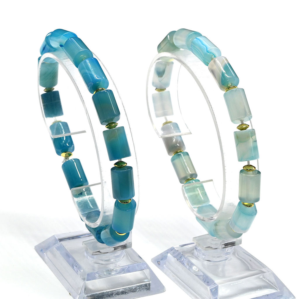 Браслет из агата тонированного цилиндр 8*12мм цв.голубой, 18см