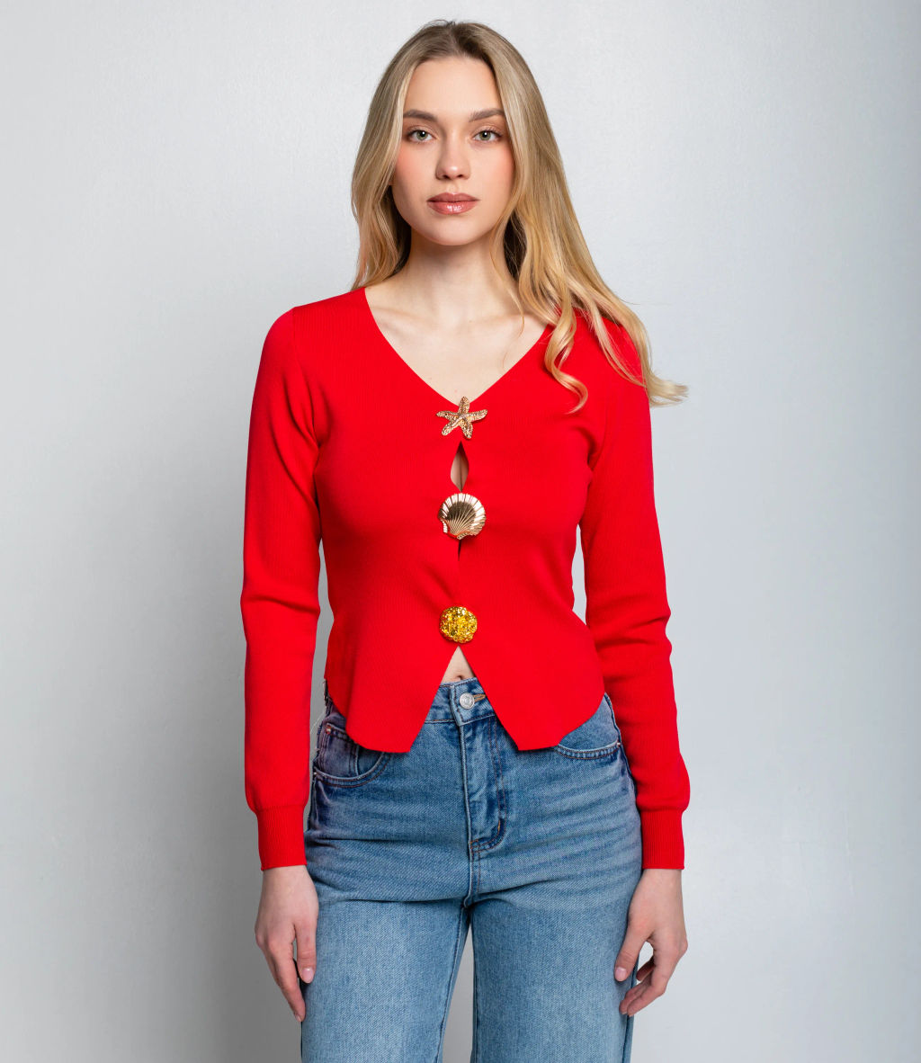 Кардиган это одежда, которая подчёркивает женственность любой женщины. Модель отлично подойдёт для вашего ассортимента и будет востребована в розничных магазинах. Его выбирают оптовые покупатели, которые ценят сочетание высокого качества и разумной цены. Фасон кардигана облегающий, длина до талии. Изделие выполнено из гладкой трикотажной ткани, имеет длинные рукава и V?образный вырез горловины. Главной особенностью являются крупные декоративные пуговицы необычной формы, стилизованные под морские мотивы (звезда, ракушка и др.), расположенные по центру изделия. Нижний край оформлен небольшими уступами, создающими интересный силуэт; модель отлично подходит для создания ярких и эффектных образов. Для пошива использована ткань в составе 65% хлопок, 30% полиэстер, 5% эластан. Материал отличается комфортом при носке, хорошей воздухопроницаемостью и эластичностью, сохраняет форму и внешний вид даже после многократных стирок, что делает изделие практичным и долговечным. Цвета насыщенные и полностью соответствуют фотографиям на сайте. На странице размещена таблица размеров:, воспользовавшись ею, вы сможете самостоятельно снять мерки и убедиться в правильности выбора. Установленная оптовая цена выгодна; для оптовых клиентов действует гибкая система скидок и индивидуальные условия сотрудничества. Уточнить минимальный заказ и сроки поставки можно у менеджера. -- Характеристики -- Цвет: красный Пол: Женский Страна производитель: Китай Сезон: Демисезон Материал: Хлопок, Эластан, Полиэстер