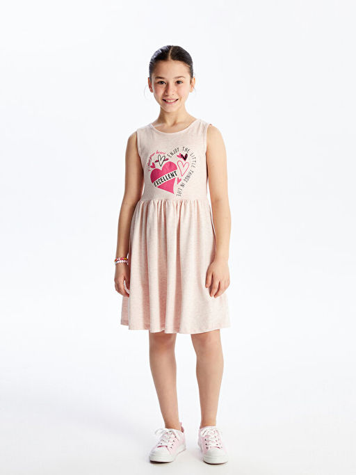 Bisiklet Yaka Bask?l? K?z ?ocuk Elbise