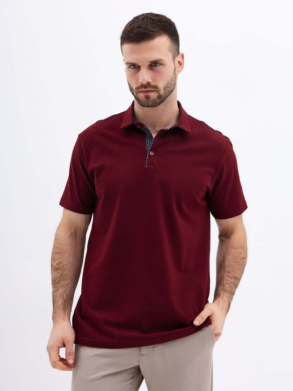 Джемпер мужской с воротником поло короткий рукав GREG G144-PO1246T-SAS2081(бордо)