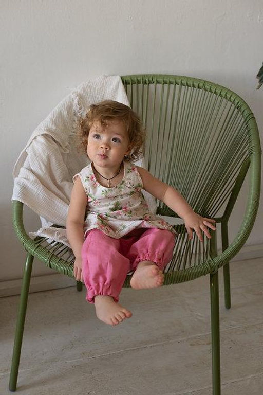 Бриджи для девочки,выполнены из умягченной полульняной ткани.Преимущество этой выработки ткани в том,что ее не надо отутюживать-ткань с так называемым "эффектом мятости". легкая и мягкая фактура материала.