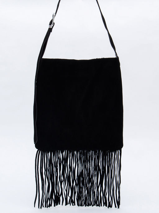 Эффектная сумка с бахромой, выполнена из замши. Дополнена серебристой фурнитурой. Данная модель закрывается на молнию, носится в руке за встроенный ремень или на плече. Ремень регулируется по длине. Каркас мягкий.