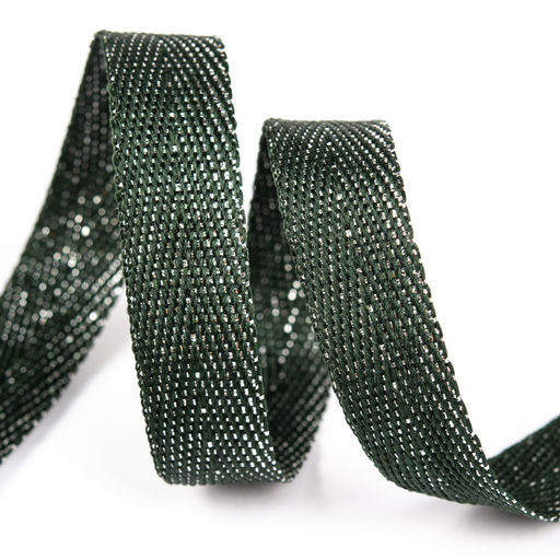 • Тесьма киперная металлизированная 13 мм 90370 цв.т.зеленый с серебром уп.50м
