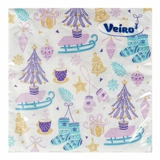 VEIRO салфетки 33см 3-сл. (20шт) с рисунком НГ Елки и санки
