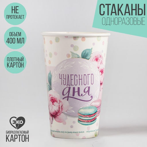 • Цена за 10 шт. Стакан одноразовый бумажный для кофе "Чудесного дня", 400 мл
