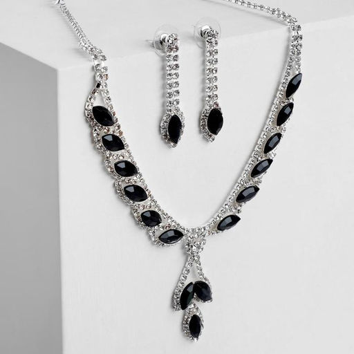 • Набор 2 предмета: серьги, колье «Листопад», ромб, чёрно-белый в серебре, 45 см