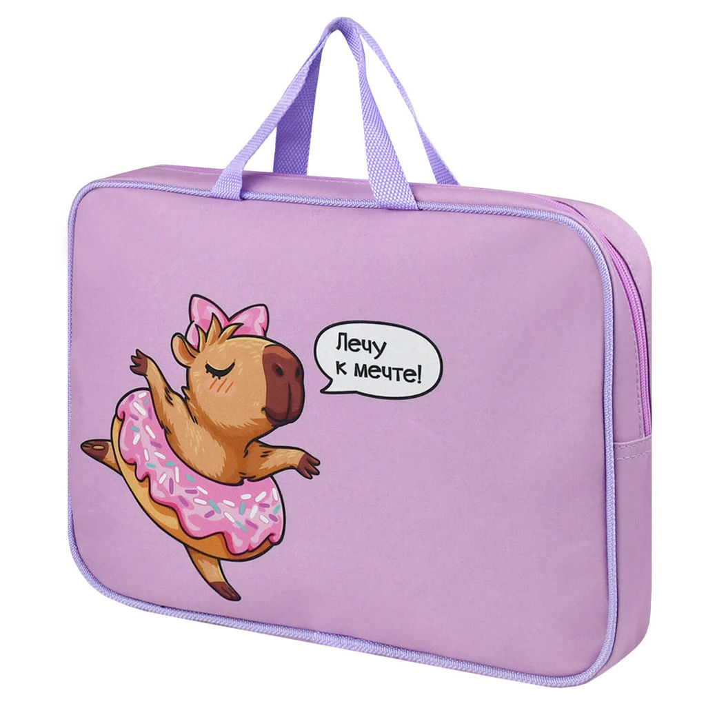 Папка для школьных тетрадей Феникс+ арт. 72393/ 24 КАПИБАРА ЛЕТИТ ( 34.5х26х7 см, 1 отделение (-я), молния, водоотталкивающая ткань, сублимационная печать)