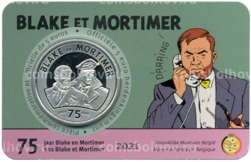 Монета 5 евро 2021 года Бельгия 75 лет комиксу Блейк и Мортимер (в блистере)