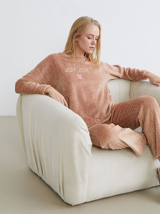 Bisiklet Yaka Nak??l? Kad?n Pel?? Pijama Tak?m?