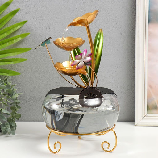 • Фонтан настольный «Стрекоза в цветах», от сети, 21×21×34 см