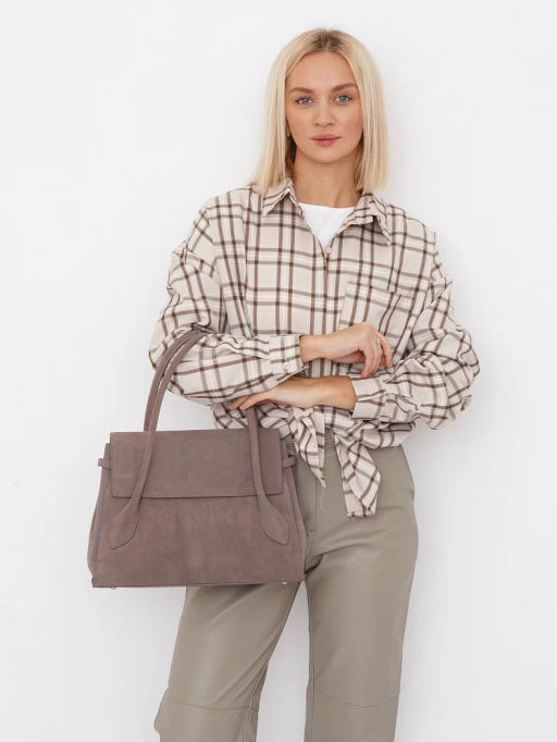 Классическая сумка, выполнена из замши. Декорирована ремня по бокам. Дополнена серебристой фурнитурой. Данная модель закрывается на клапан. Каркас полужесткий. Носится в руке за встроенные ручки или на плече. В комплекте имеется съемный ремень с регулировкой длины. На дне предусмотрены ножки.
