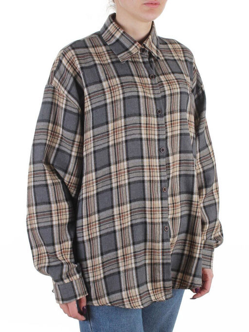 • C201 GRAY/BEIGE Рубашка женская оверсайз (95% хлопок, 5% спандекс)