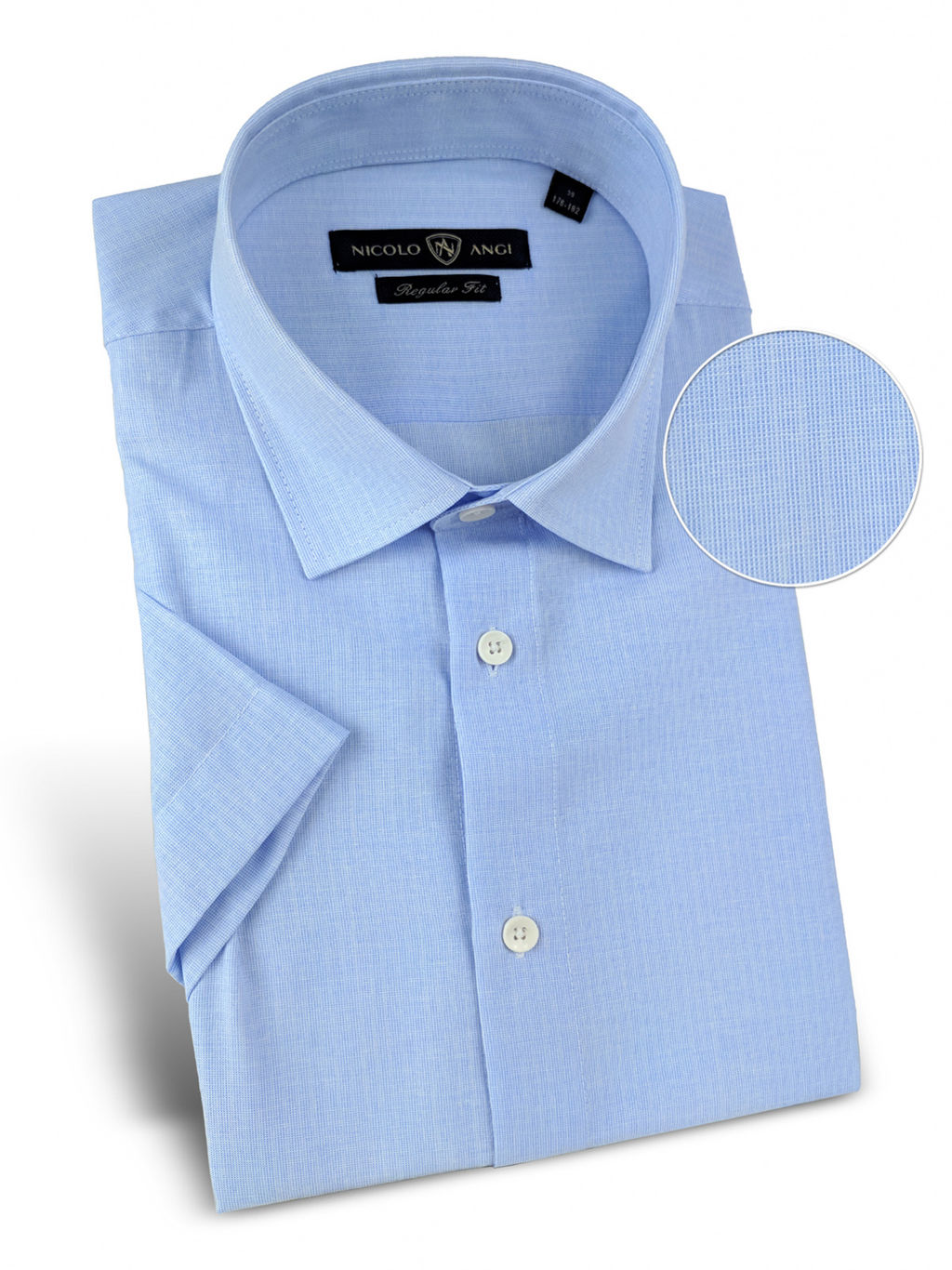 Рубашка силуэта Big size голубого цвета с коротким рукавом.