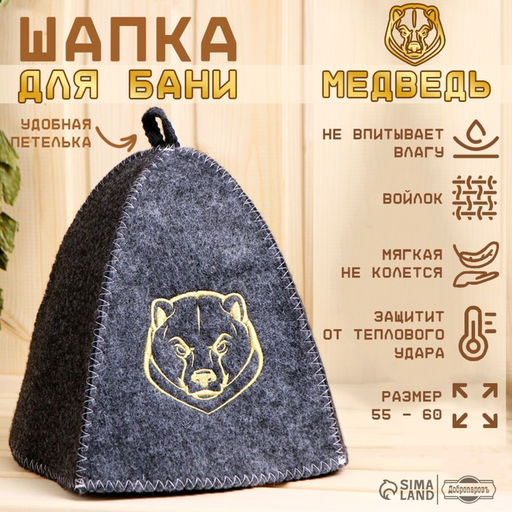 • Цена за 2 шт. Шапка для бани и сауны, «Медведь», полиэфир 70%, шерсть 30%, «Добропаровъ»