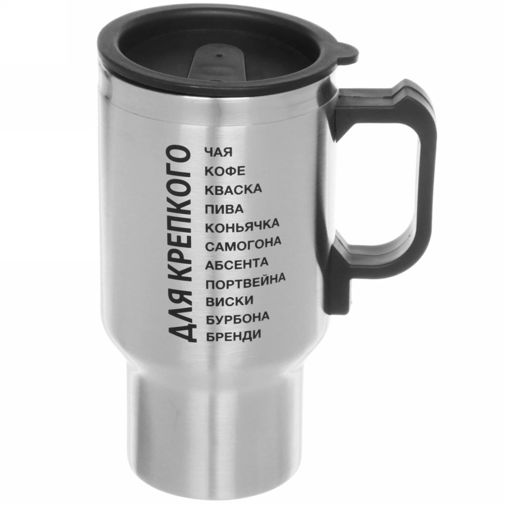 • Термокружка 450мл, с подогревом от прикуривателя "Для крепкого..." Серп и молот