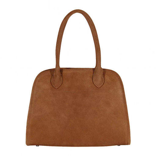 Вместительная модель, выполнена из натуральной замши.  Дополнена серебристой фурнитурой. Данная модель закрывается на молнию. Каркас мягкий. Носится на плече или в руке за ручки. В комплекте имеется съемный ремень и короткие встроенные ручки. На дне предусмотрены ножки.
