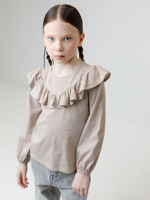 Артикул: КР 302177/бежевый,гусиная лапка к625 блузка для дев