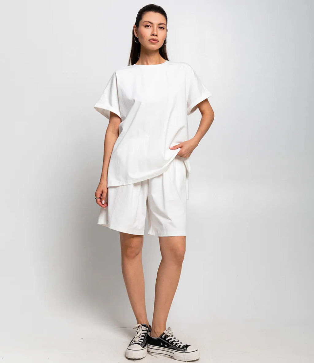 Костюм это эффектная часть гардероба, подчеркивающая женственность и уникальность каждой представительницы прекрасного пола. Костюм состоит из двух частей свободной футболки и шорт, выполненных в спокойном темно-коричневом цвете. Футболка имеет классический круглый вырез и рукава средней длины с подворотом, а шорты достигают средней длины на бедрах, обеспечивая комфорт и свободу движений. Основной материал костюма 95% полиэстер и 5% эластан. Для уверенности в размере мы представили на странице таблицу, чтобы вы могли самостоятельно обмерить себя и убедиться в идеальной посадке костюма. Предложенная нами цена является приемлемой, что делает этот комплект отличным выбором для оптовых покупателей. Не упустите возможность предложить вашим клиенткам этот стильный костюм, который станет их любимым выбором для летних дней! Позвольте вашим покупательницам наслаждаться комфортом и элегантностью с этим великолепным комплектом! Рост модели 164 см., 83-61-89.­