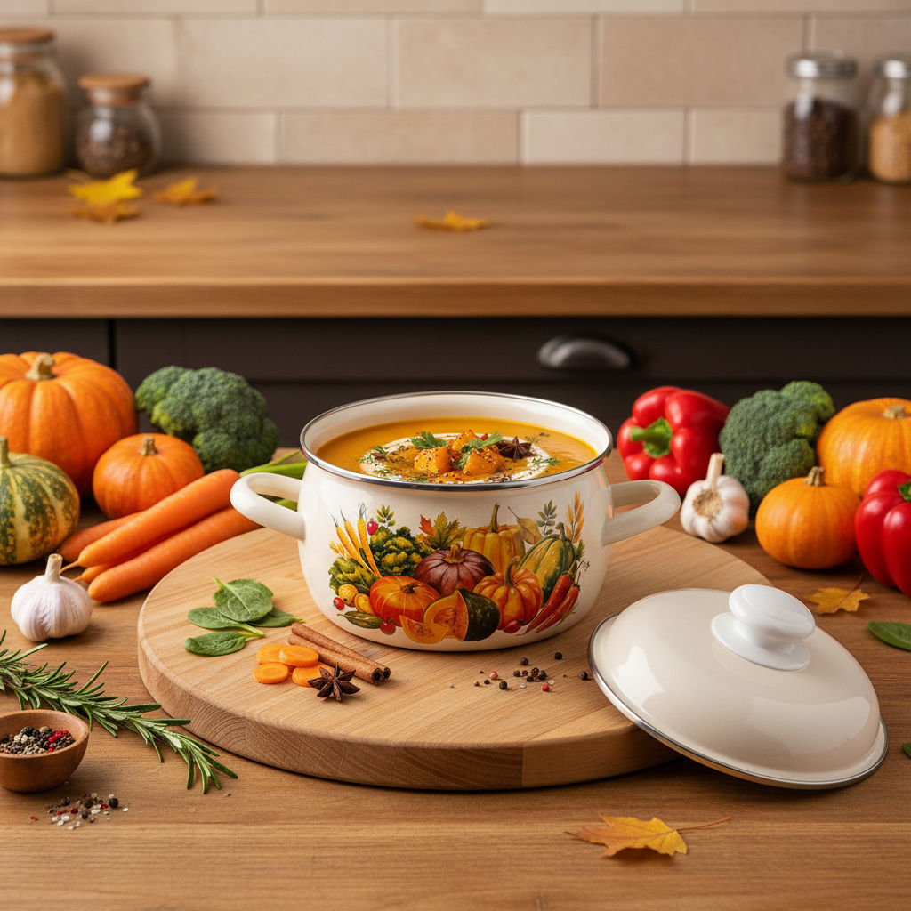 Кастрюля 2,0 литра (Осенний карнавал) С-4210АП2/4Жм изготовлена из высококачественной стали, покрытой эмалью. Эмалированное покрытие не входит в реакцию с химическим составом продуктов, поэтому можно оставлять готовую пищу в эмалированной посуде, не боясь того, что она приобретет посторонние привкусы. Кроме того, поверхность этого материала идеально гладкая, не подверженная размножению бактерии и поэтому еда даже при долгом контакте с ней не испортится. Внешние стенки оформлены ярким красочным изображением.­
