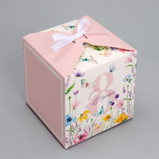• Цена за 3 шт. Коробка подарочная складная, упаковка, С 8 Марта, нежные цветы, 12?12?12 см